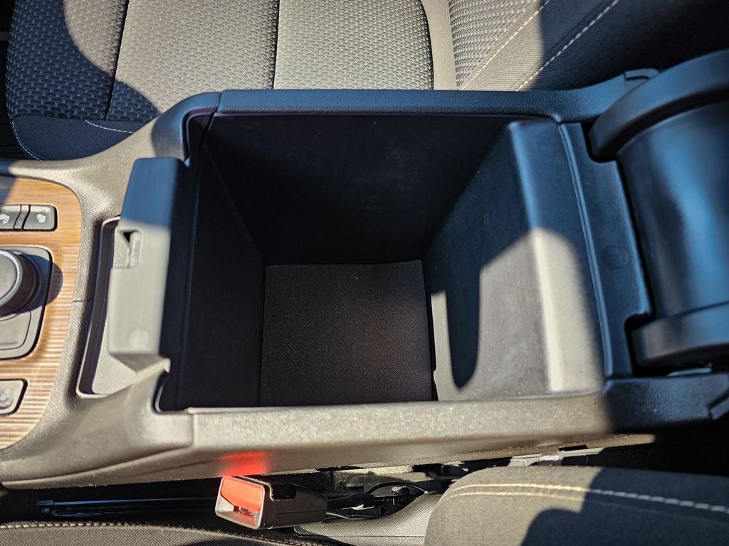 - Console, front center with 2 cup holders and storage, includes rear storage drawer